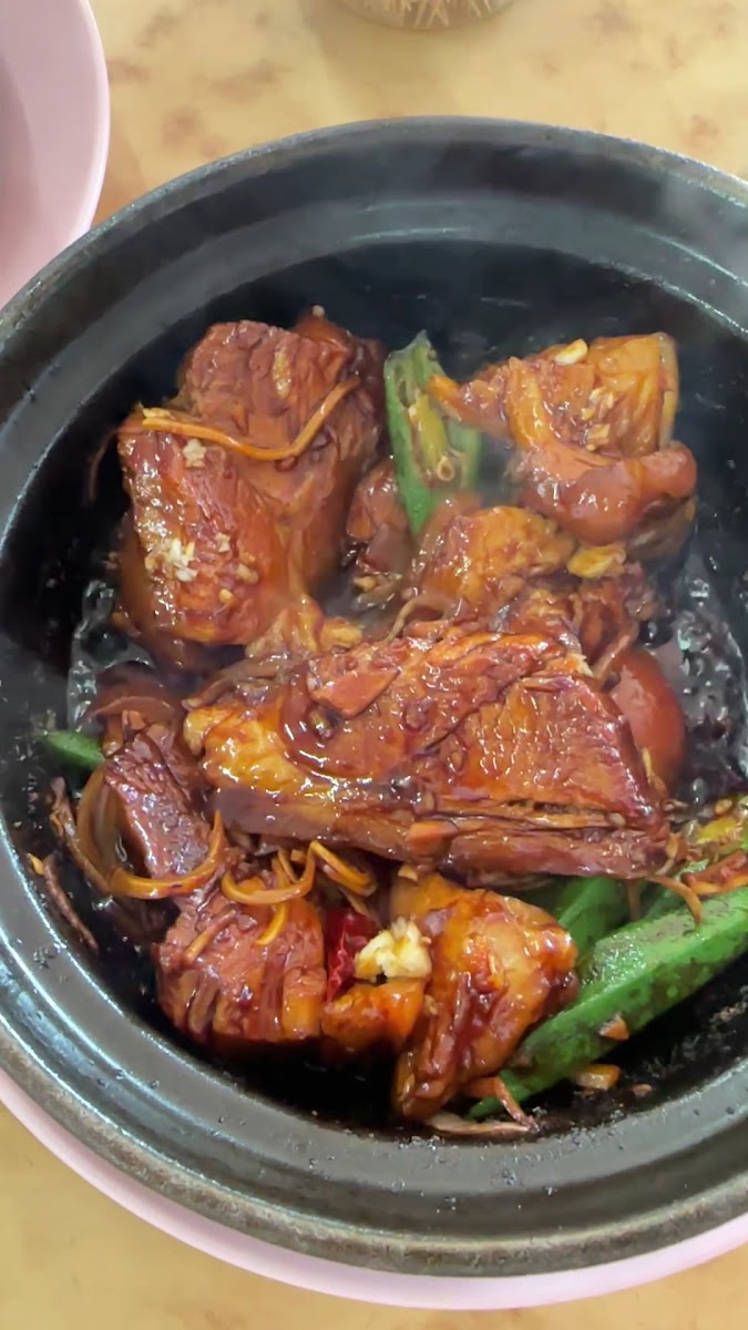 [holiao] 1) Overall - Chinese bak kuh teh place, average price, friendly service, spacious open air seating and parking capacity, do expect queue during peak hour, food and drink selection are pork broth, dry bak kuh teh, okra, fried vegetables, fish stir fry, sea cucumber and more from Restoran Ah Thiam Bak Kut Teh 2) The dried bak kut teh packs bold herbal flavours with a fragrant, slightly spicy kick. Tender meat pairs well with the thick, savoury sauce. 3) Braised sea cucumber is delicately soft and absorbs the rich, umami sauce beautifully — a luxurious and flavorful combo.